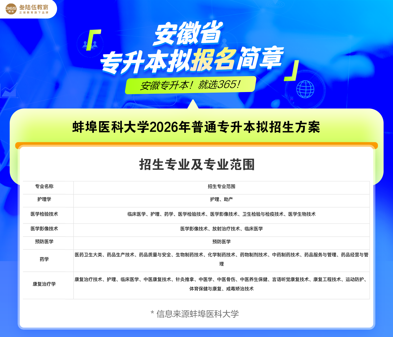 蚌埠醫(yī)科大學(xué)2026年普通高校專升本招生方案(擬)